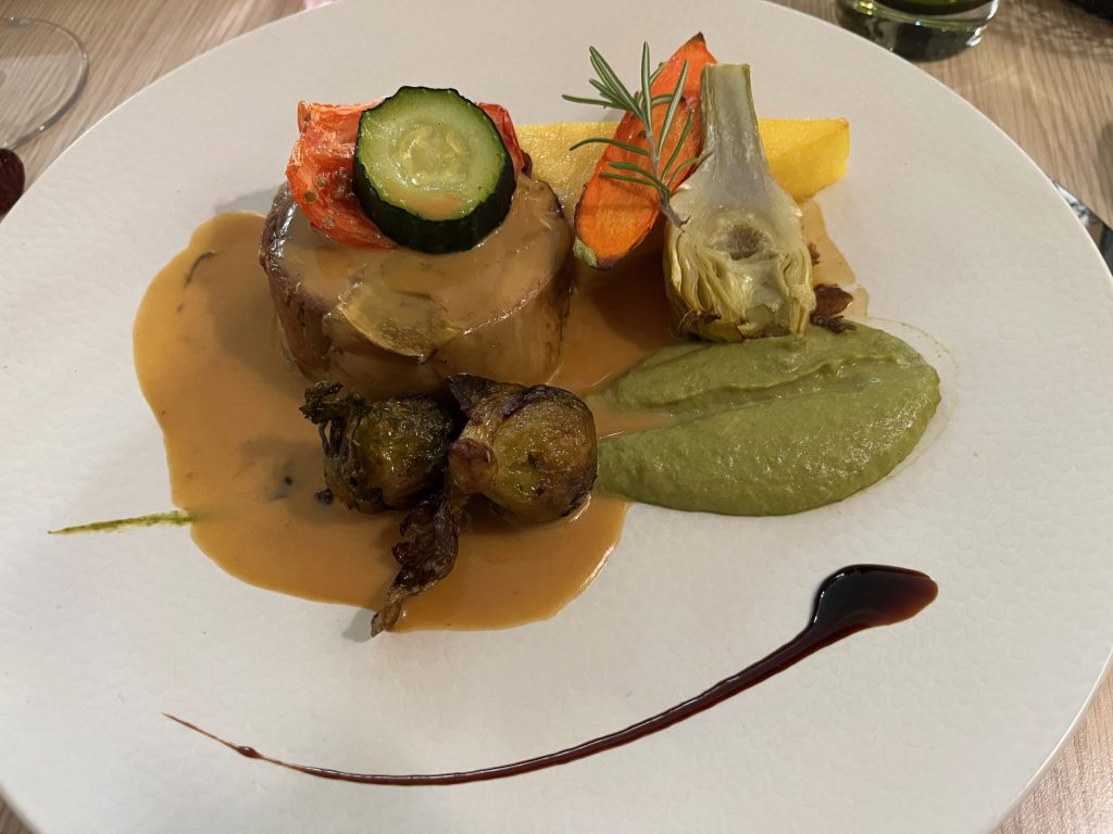 Het restaurant ligt mooi en heeft een “cave”, waar je de wijn die je wilt drinken kunt uitkiezen en waar je ook eventueel wijn kunt kopen van verschillende wijnhuizen. In het restaurant kun je dezelfde wijn drinken met 13 euro “kurkgeld”.
